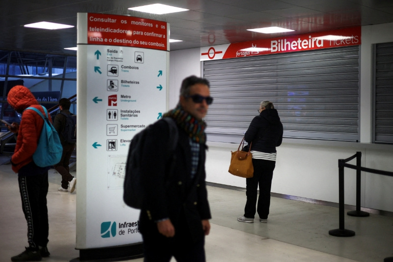 LISBOA, 11 dic (Reuters) - Los servicios ferroviarios se paralizaron el jueves en todo Portugal, se cancelaron cientos de vuelos y se cerraron escuelas, mientras los sindicatos iniciaban la primera huelga general en más de una década, en protesta por las reformas laborales propuestas.