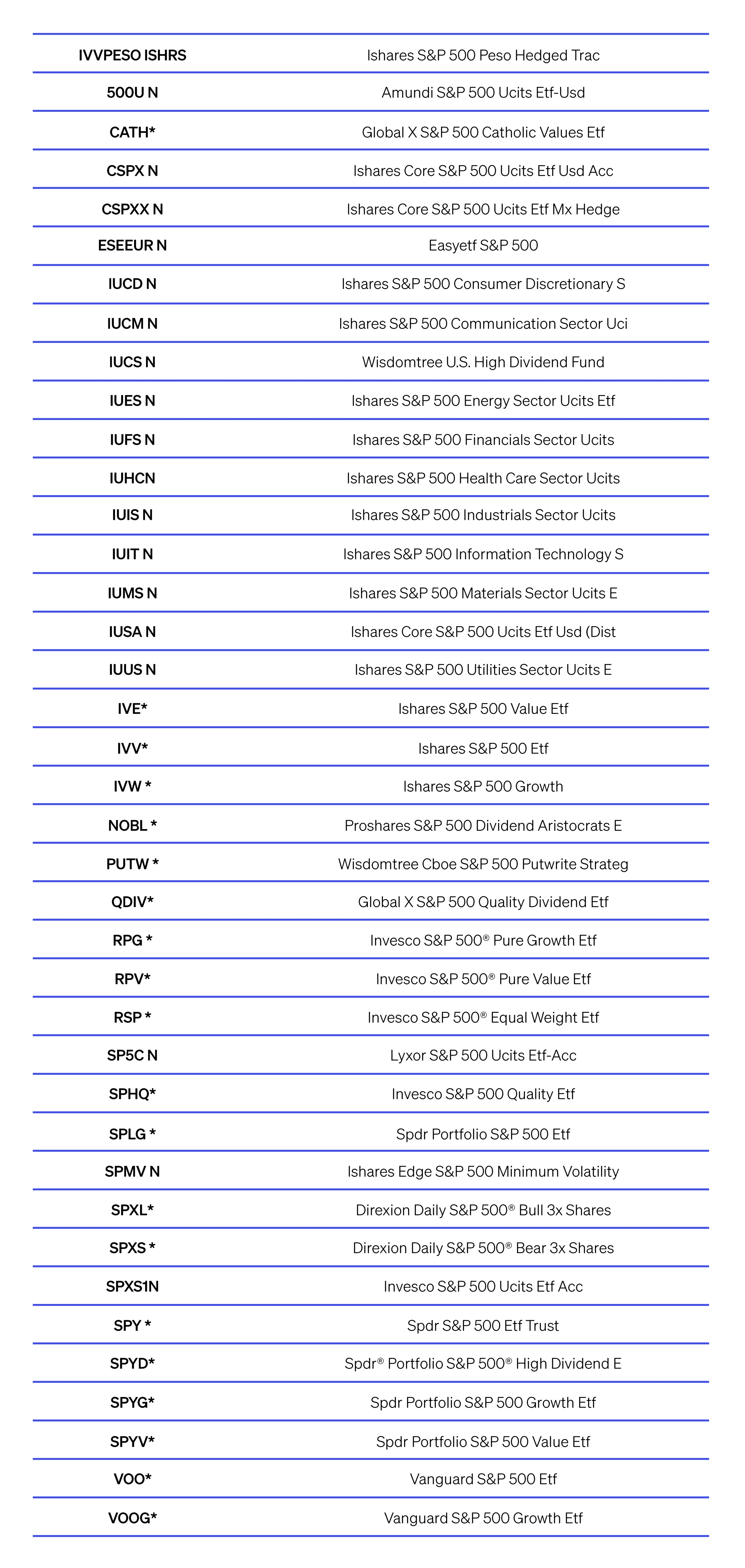La manera de invertir en el S&P 500 en México es a través de los ETFs o fondos indexados. Algunos de los títulos disponibles en el mercado bursátil de México son: