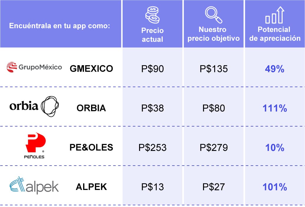 En Análisis GBM tenemos la convicción de que estas cuatro empresas son una gran oportunidad para diversificar tu portafolio con acciones.