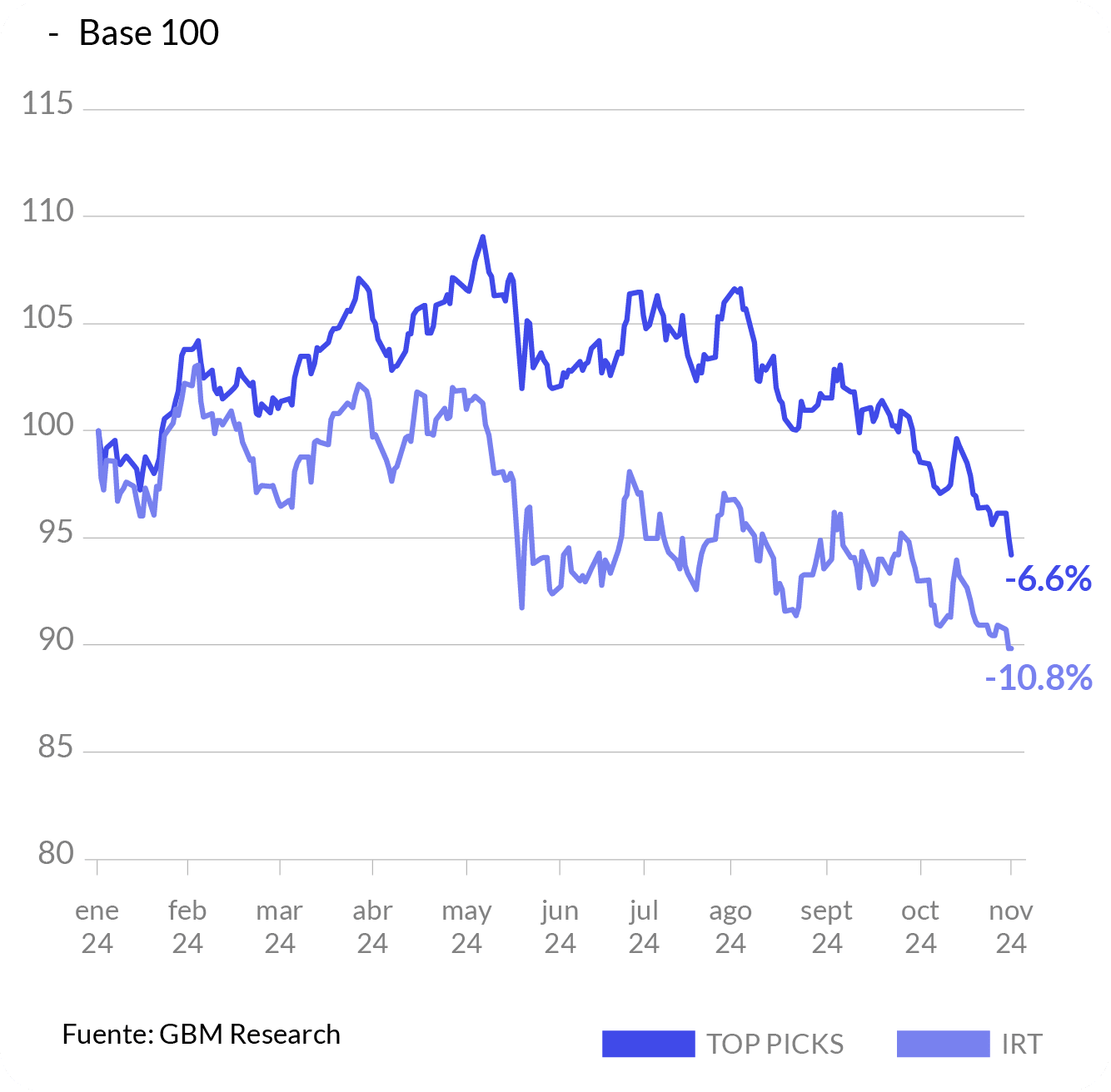 Rendimiento de 2024 de los Top Picks GBM vs. IRT