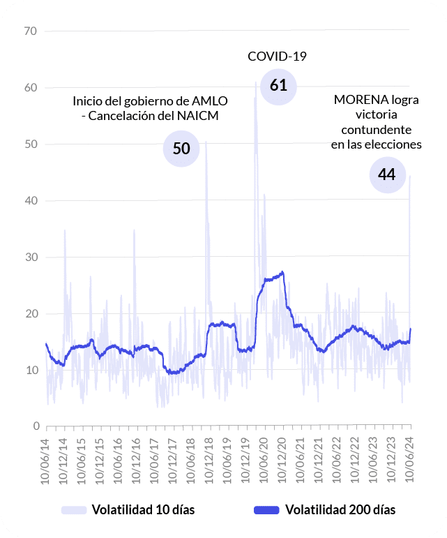 Las recientes elecciones en México han introducido un periodo de intensa volatilidad en el mercado, siendo el tercer episodio de mayor volatilidad en los últimos diez años. Nuestro departamento de Análisis considera que este entorno prevalecerá a corto plazo, a medida que se acerquen hitos políticos clave en un mercado ansioso por evaluar riesgos potenciales.