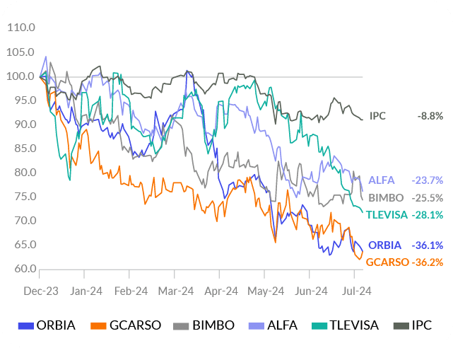 ORBIA, una compañía mexicana con operaciones a nivel mundial, ha tenido el segundo peor desempeño del IPC en lo que va del año, con una pérdida de 41.6%. Asimismo, cabe destacar que el precio al que cotiza hoy (22 pesos por acción) es el más bajo en más de una década.