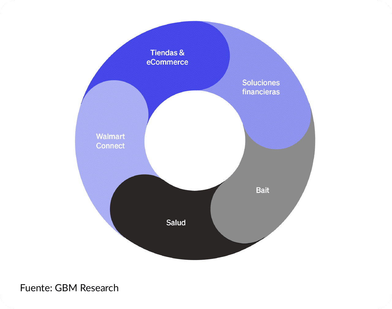 En los últimos años, WALMEX se ha centrado en crear un ecosistema robusto para atender las necesidades clave de sus clientes, incluyendo servicios financieros, conectividad, atención médica y publicidad. Estas nuevas verticales de negocio han mejorado de manera exponencial y están listas para contribuir aún más al crecimiento del negocio principal, impulsando el tráfico en tiendas y aportando a la rentabilidad, mientras permiten a la empresa invertir a mejores precios.