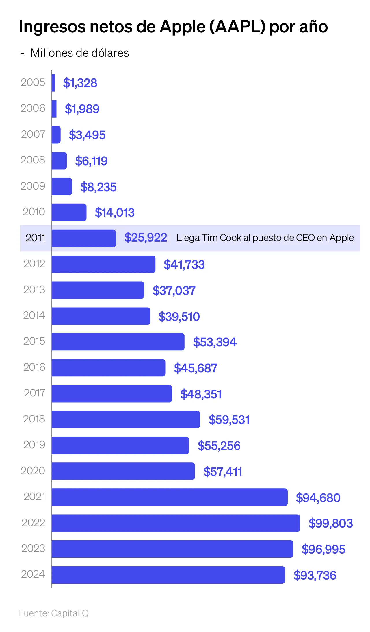 Bajo el liderazgo de Cook, Apple tuvo logros históricos. En 2018, se convirtió en la primera empresa en alcanzar una valuación bursátil de $1 billón de dólares. En 2020, duplicó esa cifra. En 2022, alcanzó los $3 billones. Pero más allá de los números, lo que construyó fue una comunidad global de usuarios que no solo usan Apple, creen en Apple.
