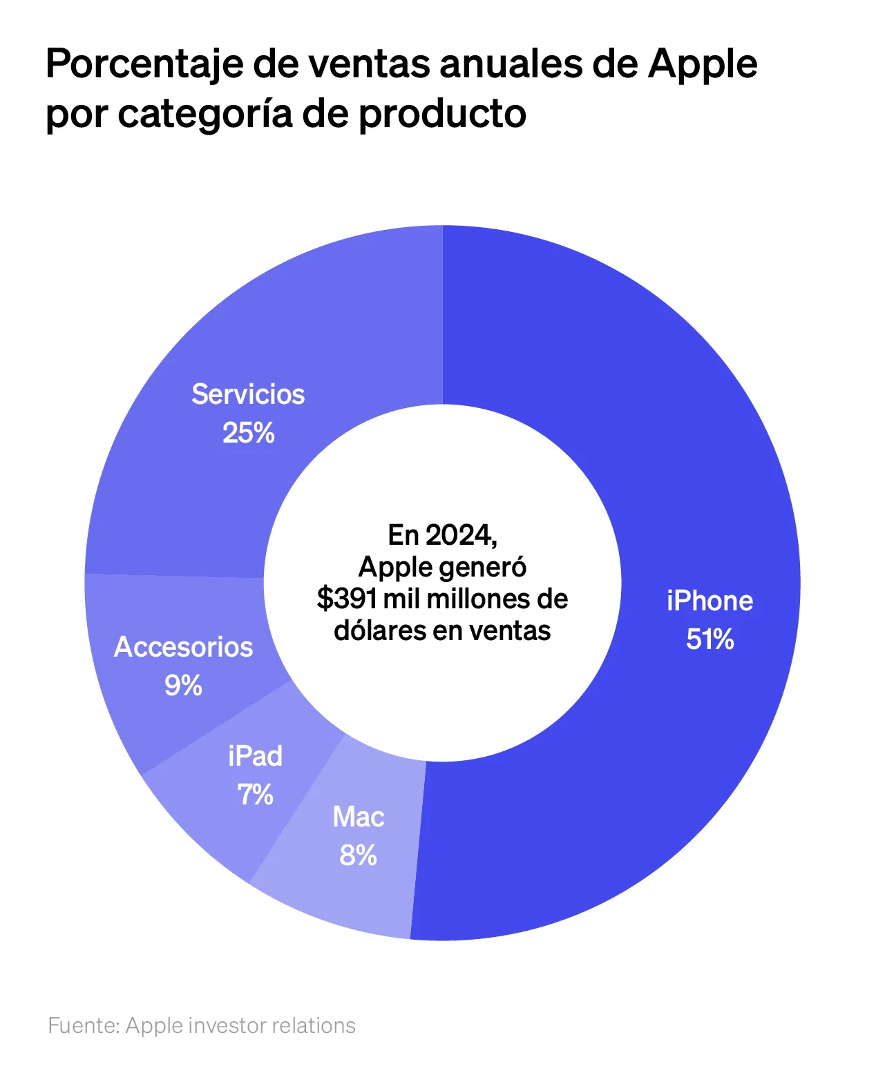 Apple ya no es solo una empresa tecnológica: es un barómetro cultural. En 2024, la compañía lideró el mercado global de smartphones con un 23% de participación, superando a Samsung (16%) y Xiaomi (13%). El iPhone generó $201,180 millones de dólares en ingresos, representando el 51.45% de los ingresos totales de Apple.