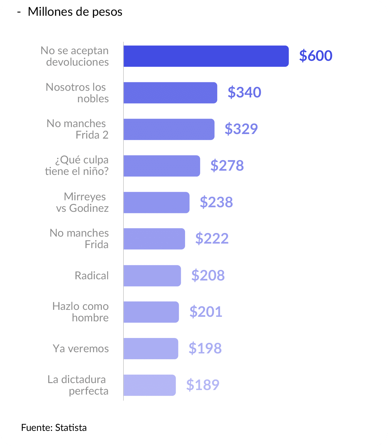 A pesar de esta diferencia, el cine mexicano ha logrado recuperar su popularidad en las últimas décadas, con varias películas que han superado los cientos de millones de pesos en taquilla.