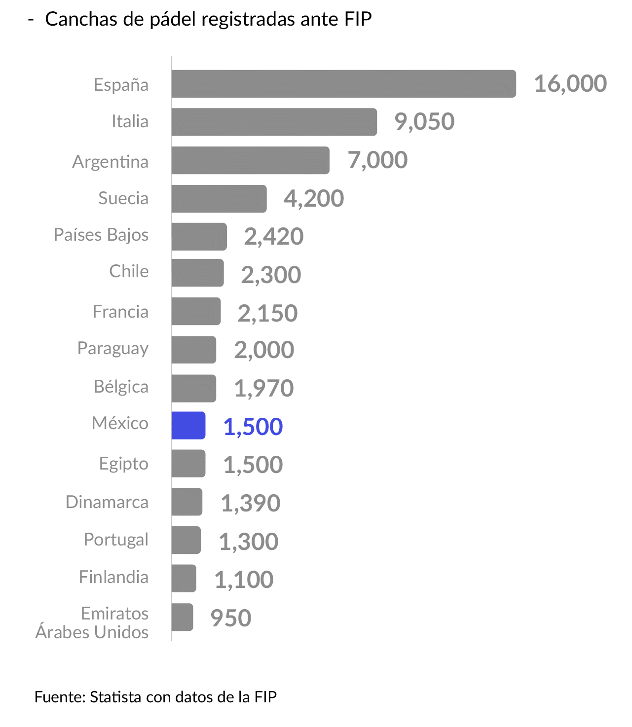 Número de canchas de pádel por país en 2024