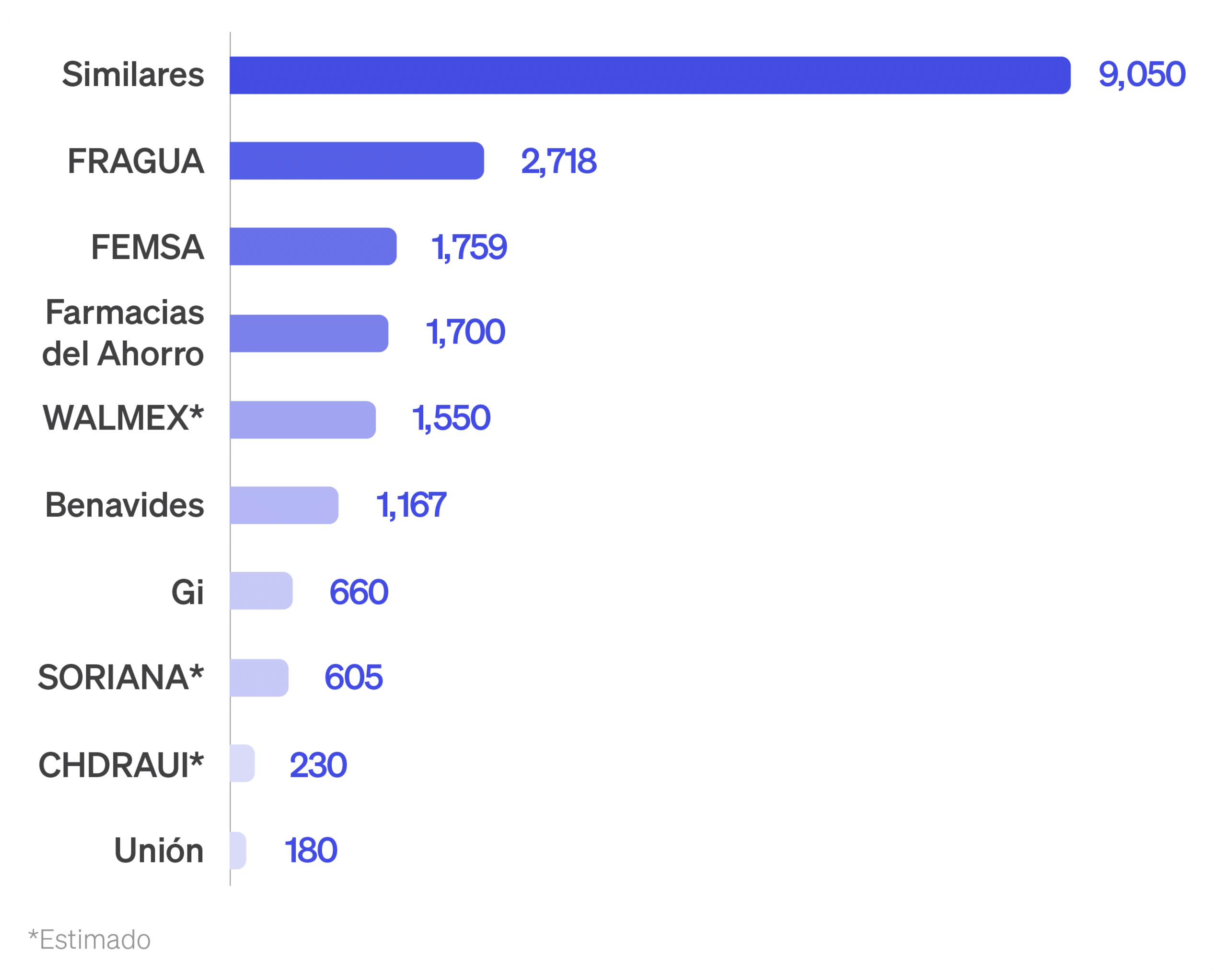 Número de sucursales de las principales farmacias en México (cierre de 2023)