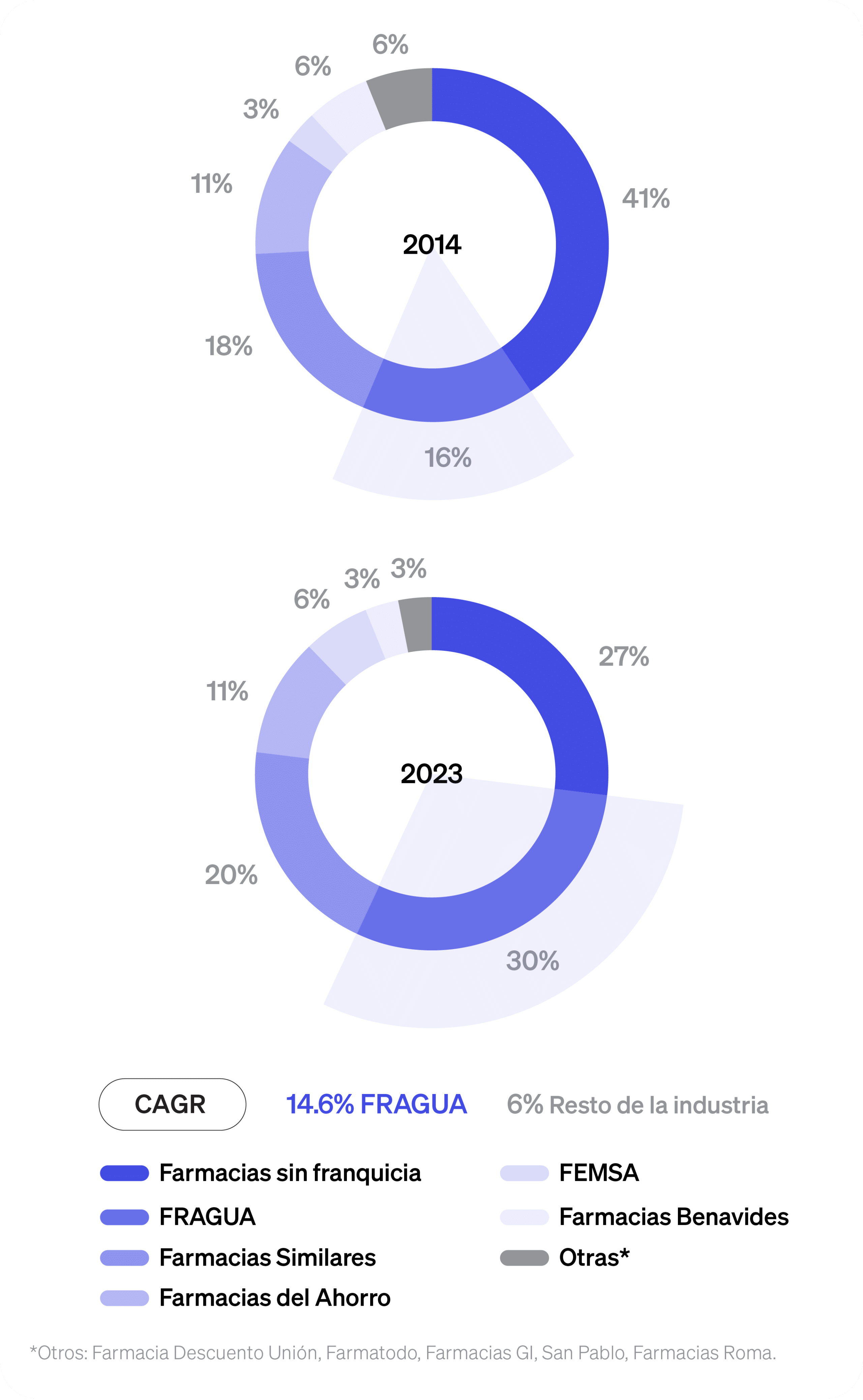 Se estima que la industria de las farmacias en México en 2023 generó 394,000 millones de pesos y que para 2028 sea de casi 500,000 millones de pesos. Para lo cual seguramente Fragua ya se está preparando para quedarse con una “rebanada del pastel”.