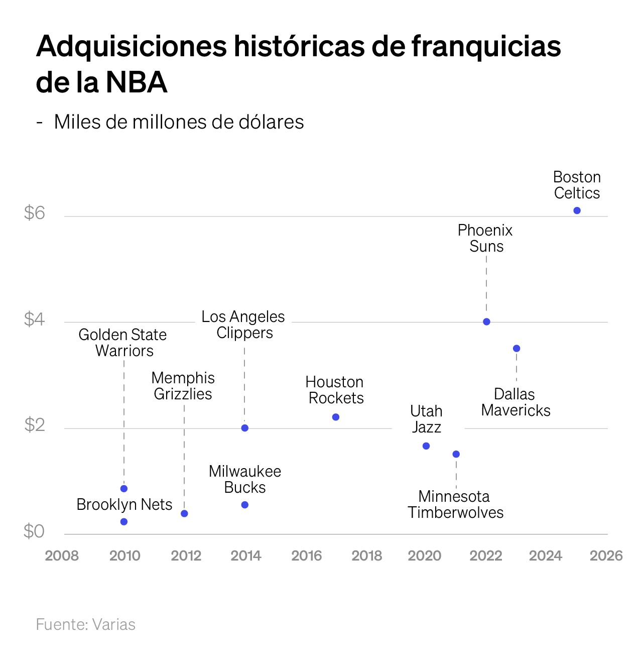 Wyc Grousbeck, quien compró el equipo en 2002 por $360 millones, continuará como CEO hasta 2028. El retorno sobre inversión es un reflejo del crecimiento explosivo en la valorización de las franquicias deportivas; pero, sin lugar a dudas, esta venta de los Celtics es hasta la fecha la más lucrativa de la historia del básquetbol.