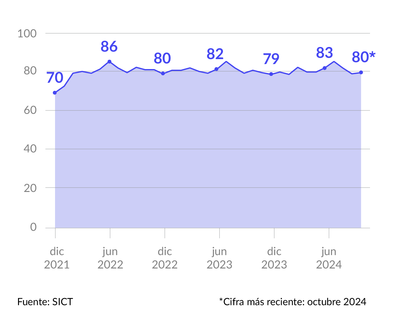 El transporte terrestre y aéreo muestra un crecimiento significativo. Las aerolíneas nacionales como Volaris, Viva Aerobus y Aeroméxico han reportado niveles de ocupación cercanos al 90% durante las semanas de Navidad y Año Nuevo, mientras que la demanda de autobuses en líneas como ETN y Primera Plus aumenta más del 25%. Además, se observa un incremento en la movilidad por carretera, con un flujo vehicular de hasta 5 millones de autos diarios en autopistas clave como la México-Acapulco y la México-Querétaro, según datos de la Secretaría de Comunicaciones y Transportes (SCT).