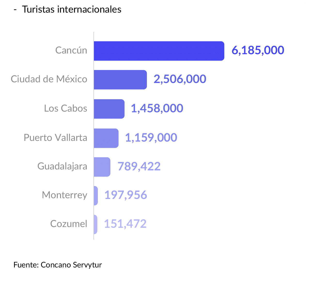 Ciudades más visitadas de México por turistas internacionales, 2023