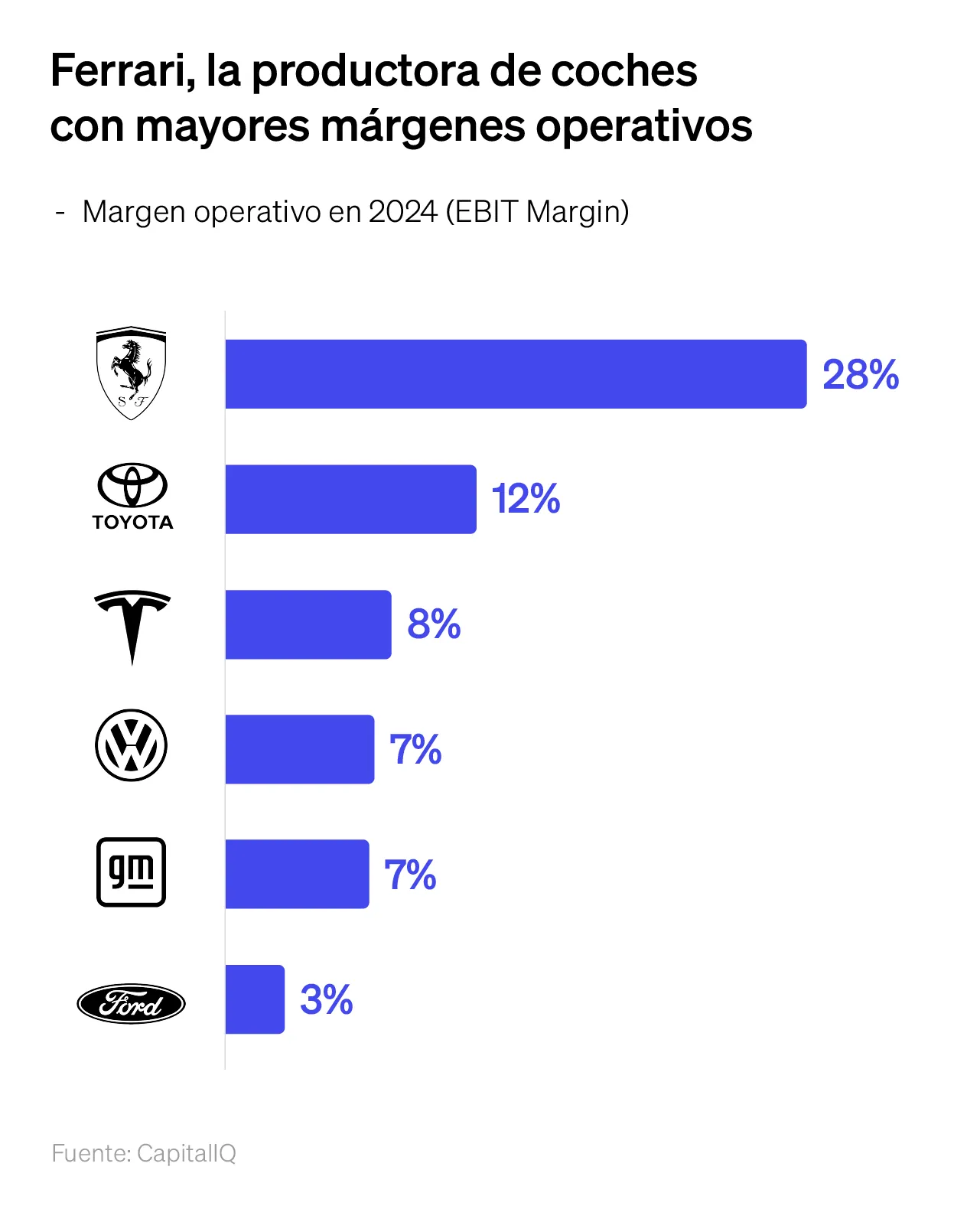 En 2024, Ferrari produjo más de 20 mil autos; Toyota, más de 10 millones. Ferrari no tiene SUVs para todos los gustos, no compite por precio ni volumen y, aun así, vale más en bolsa que Ford o General Motors. ¿Cómo puede una empresa tan chica en producción ser, al mismo tiempo, una de las más rentables?