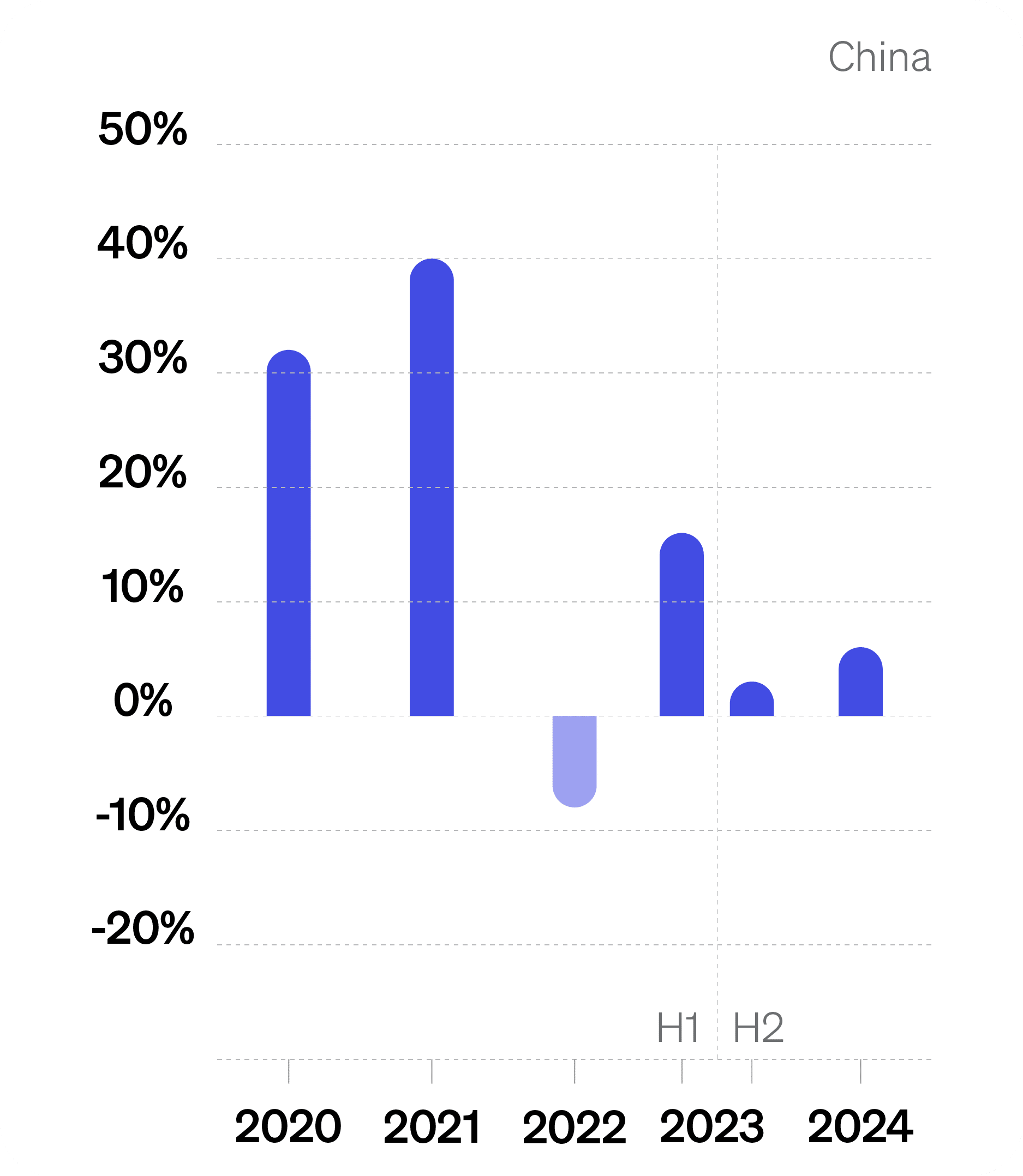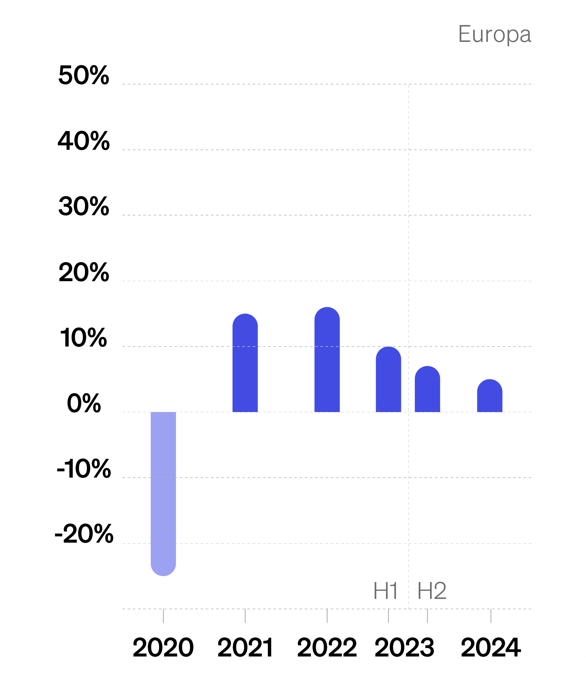 Porcentaje de crecimiento año contra año en las ventas de lujo en la industria de la moda