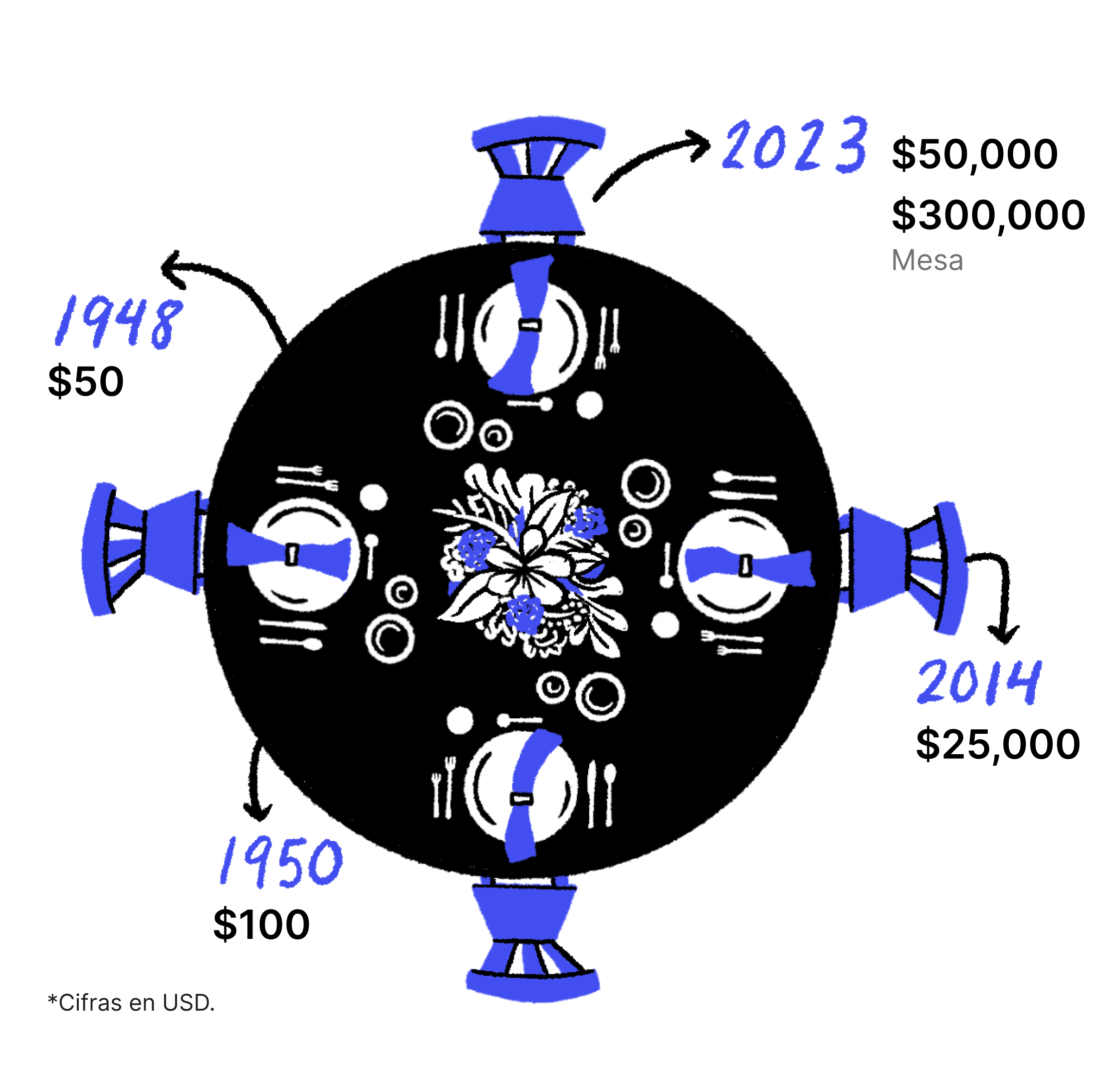 Así es como nació The Costume Institute Benefit, el nombre oficial de la Met Gala. La primera edición, en 1948, fue una simple cena a la que se convocó a la jet set neoyorquina para recaudar fondos en favor de la organización. En aquella época, el boleto de acceso a la gala rondaba los $50 dólares. Esa cifra es de risa frente al costo actual por una entrada al evento.