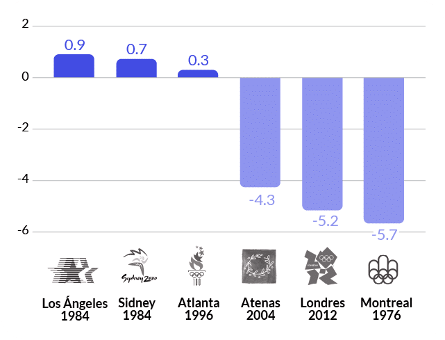 Superávit o déficit de algunos Juegos Olímpicos.
