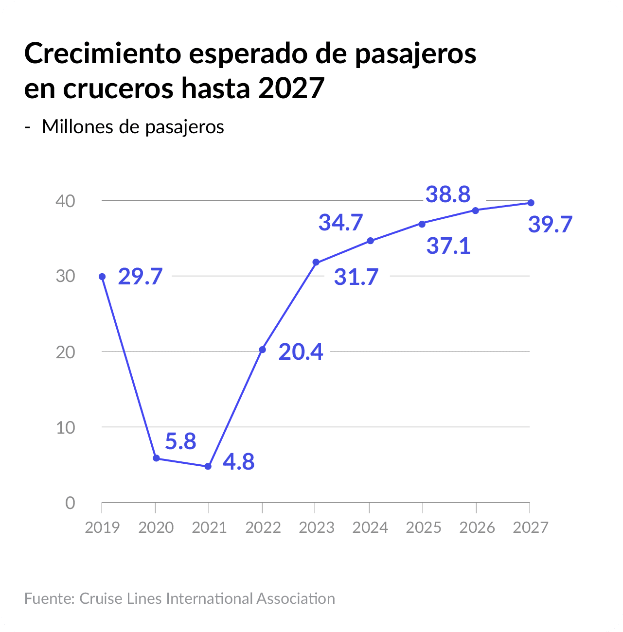 En 2024, la industria de cruceros transportó a más de 31 millones de pasajeros a nivel global, reflejando una recuperación sólida y superando las cifras registradas antes de la emergencia sanitaria.