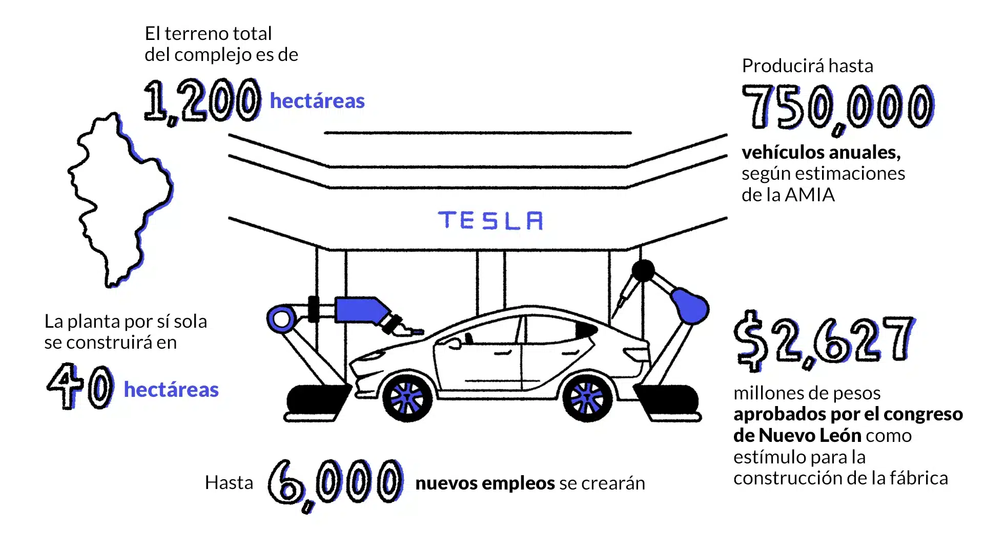Algunos datos de la Gygafactory de Tesla en Nuevo León
