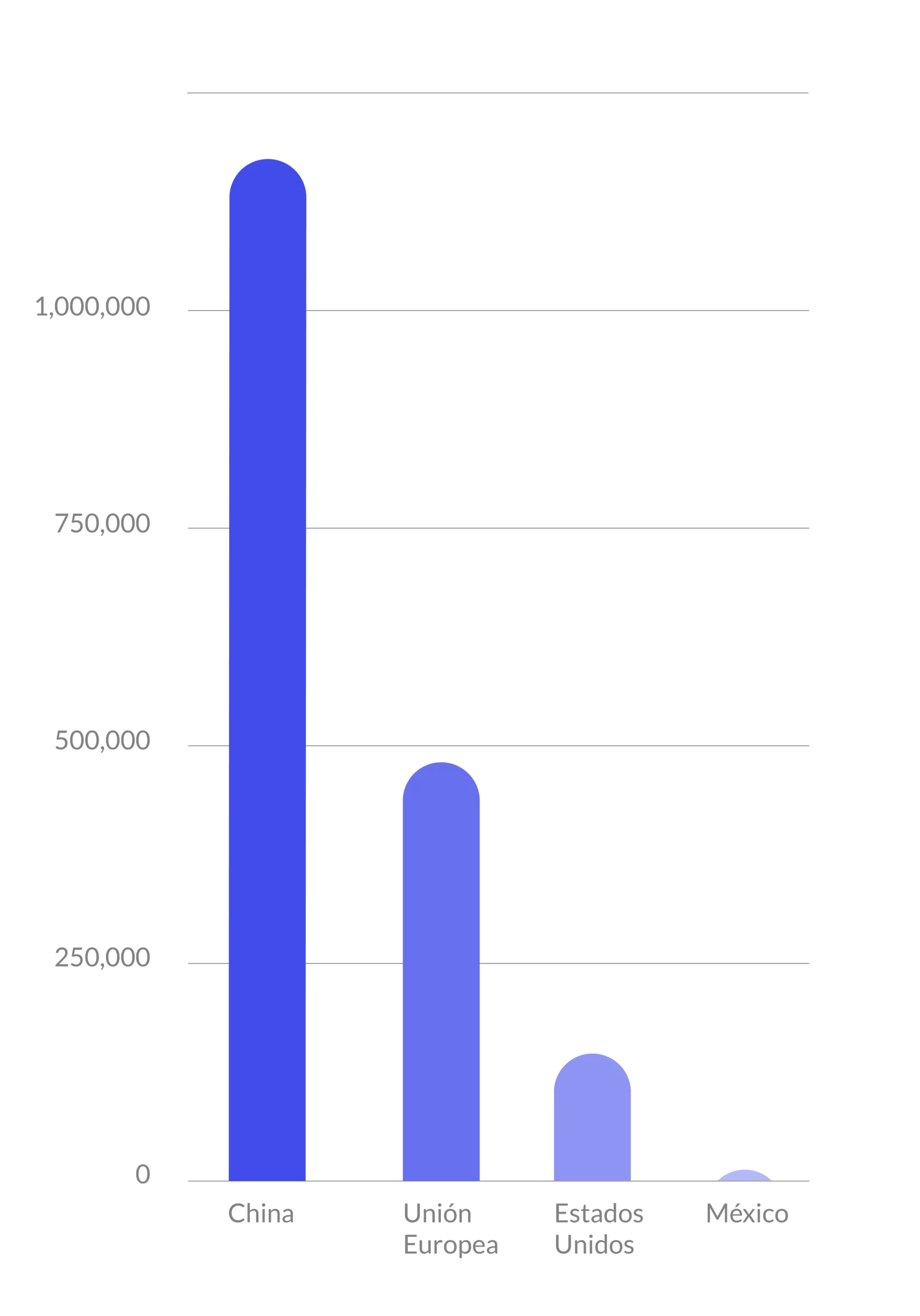 Pese a la dinámica industria, la adopción de los vehículos eléctricos en México ha sido lenta: de todas las ventas de vehículos el año pasado, sólo 1% fueron eléctricos. Estas cifras distan mucho de los verdaderos líderes del mercado de los EVs en el mundo. La penetración de vehículos eléctricos en Estados Unidos durante el 2023 fue del 7.2%, frente al total de autos vendidos. En el caso de la Unión Europea la cifra se dispara hasta el 14.6%, mientras que en China fue del 21.1%, convirtiendo al gigante asiático en el gran líder mundial de la electromovilidad.