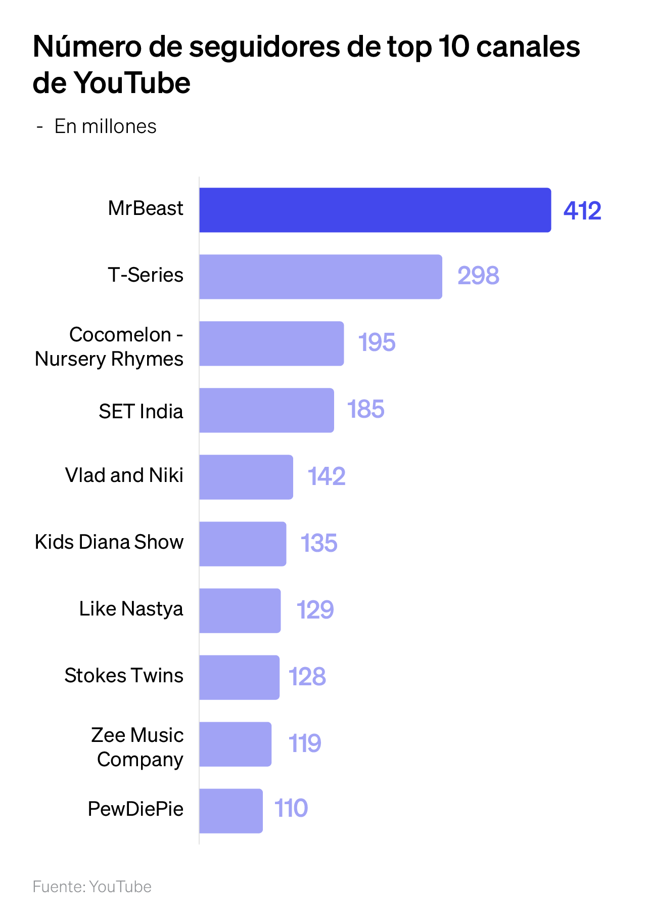 Su fórmula ha funcionado a la perfección. Hoy, cuenta con más de 400 millones de seguidores, lo que lo vuelve el youtuber más grande del mundo, superando a gigantes como T-Series y a su ídolo, PewDiePie, quien fue el creador más popular de la plataforma durante muchos años.