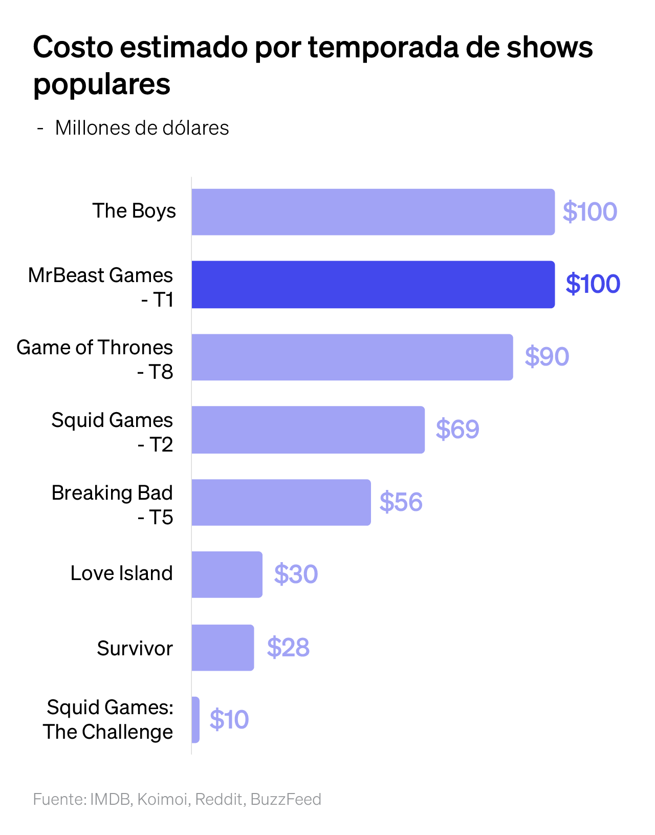 La otra parte de su negocio es la producción de contenido, que no solo integra sus productos en redes sociales, sino que ahora también incluye su reality show en Amazon Prime. Para hacer esto posible, MrBeast cuenta con un estudio valuado en más de $14 millones de dólares, donde trabajan más de 700 personas, según su perfil en LinkedIn.