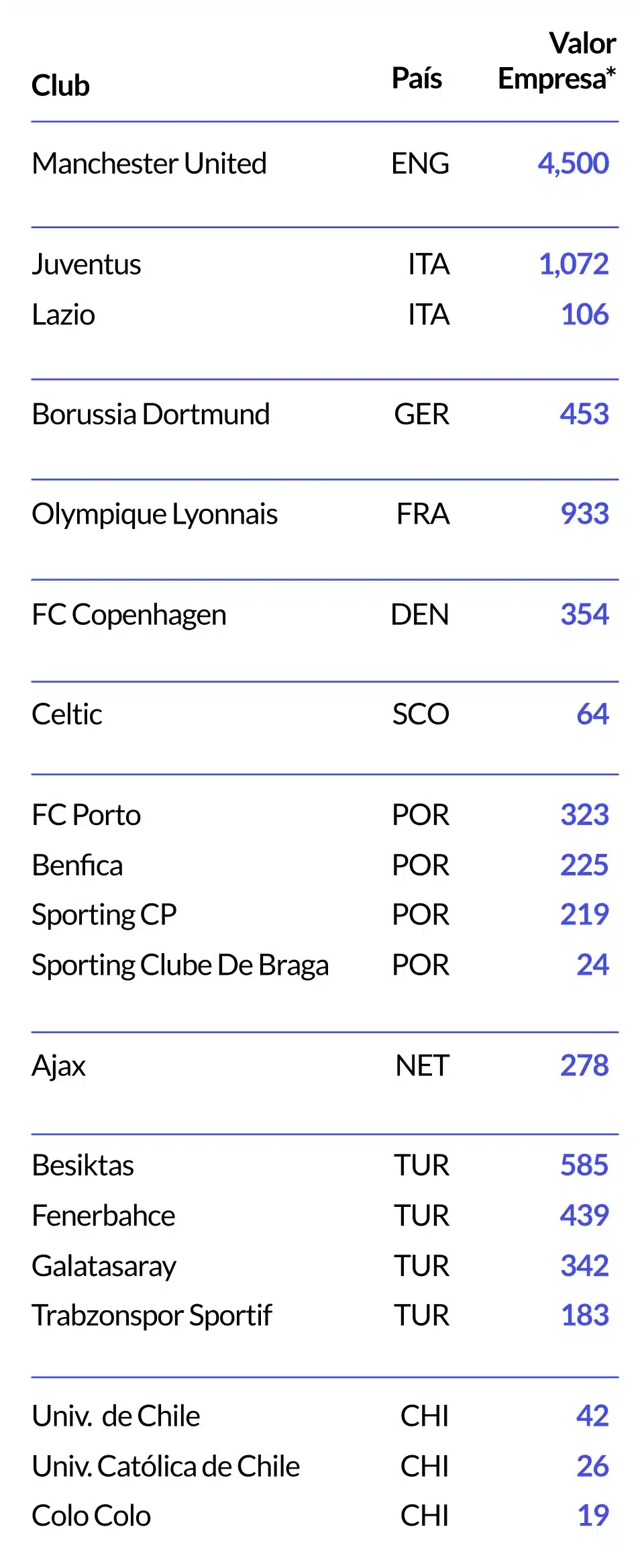 Por ejemplo, en Inglaterra tenemos el caso del Manchester United, listado en la Bolsa de Nueva York, que hoy en día es uno de los clubes deportivos más valiosos del mundo. La Juventus de Turín es otro actor importante, pues cotiza en la Borsa Italiana desde 2001. La Juve no fue el primer equipo italiano en volverse público; ese honor le pertenece a la Lazio, que lo hizo en el 2000 y después la Roma en ese mismo año. Si vamos a otra de las grandes ligas de Europa, está el Borussia Dortmund, que hasta la fecha es el único club de fútbol alemán cuyas acciones se comercializan públicamente.