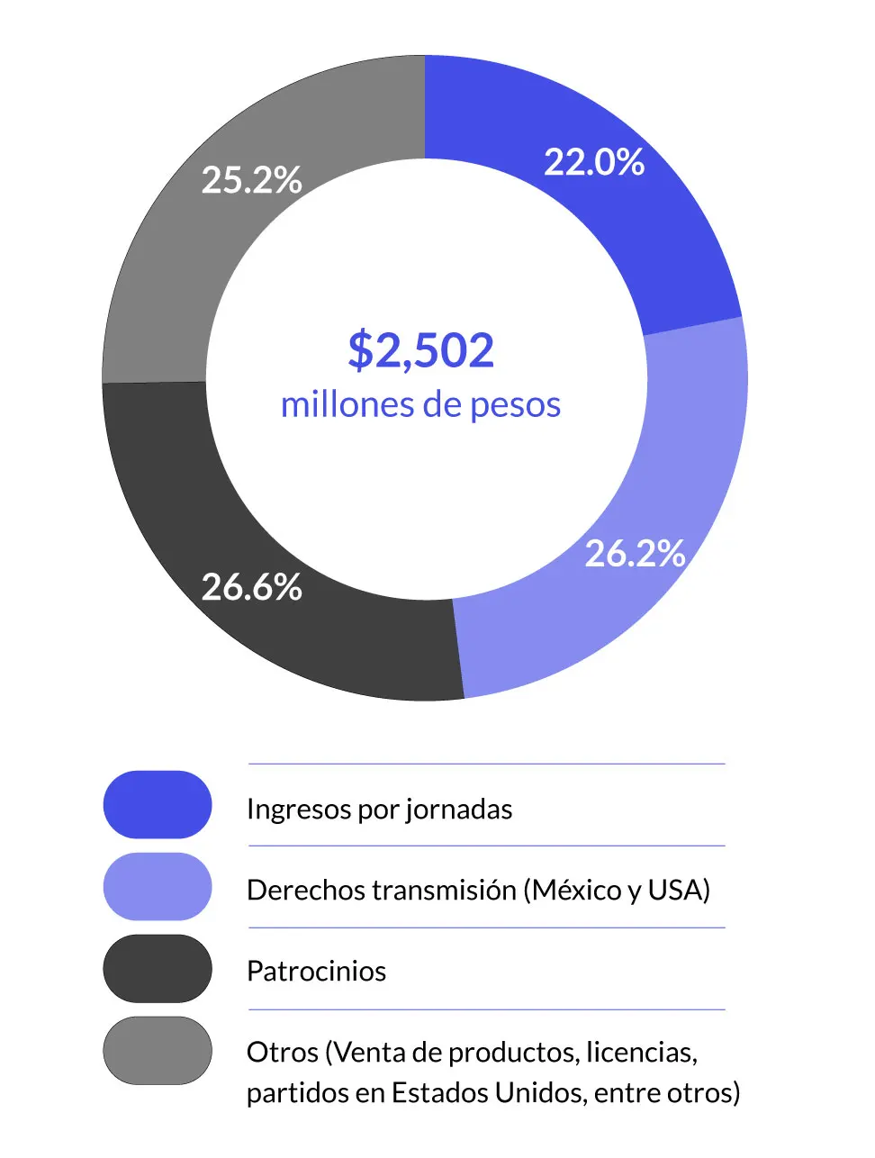 ¿Qué significa entonces Ollamani para Grupo Televisa? Los negocios dentro de esta nueva empresa representaron el 8% de las ventas totales de Grupo Televisa en 2023, mientras que las operaciones de fútbol —tanto del Club América como el Estadio Azteca— significaron el 3.5%. En todo 2023, Ollamani tuvo ingresos por $338 millones de dólares.