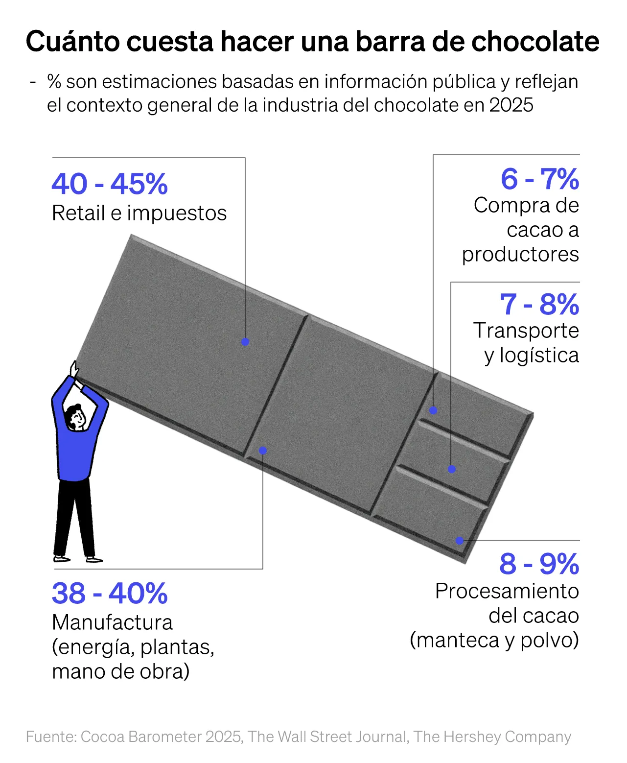 Todos tenemos un chocolate favorito. Uno que nos recuerda a la infancia, a un regalo, a una tarde cualquiera o a un antojo específico. No pensamos en su origen ni en cómo llegó ahí. Solo sabemos que siempre está, que sabe igual y que cuesta más o menos lo mismo desde hace años. El chocolate se volvió parte de la rutina, casi invisible de lo presente que es. Pero esa normalidad esconde mucho más de lo que parece. Detrás de una barra de chocolate hay una industria construida sobre insumos volátiles, márgenes ajustados y decisiones que se toman pensando en millones de unidades, no en una sola mordida. El chocolate se convirtió en un negocio de escala, donde sobrevivir implica dominar procesos, costos y distribución.
