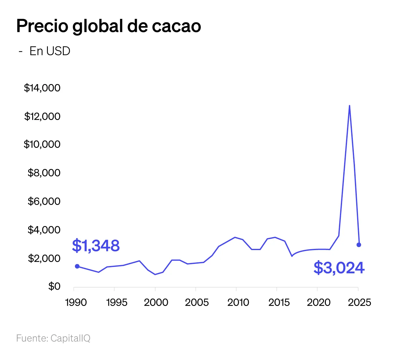 Esa estandarización dio origen a una industria enorme, pero estructuralmente frágil. El chocolate es un negocio construido sobre commodities volátiles, especialmente el cacao, cuya producción está concentrada en pocas regiones del mundo, principalmente Latinoamérica y África, y depende de condiciones climáticas cada vez más impredecibles. En los últimos años, los precios del cacao llegaron a superar los $11,000 dólares por tonelada, presionando márgenes en toda la industria y obligando a las empresas a subir precios, reformular productos o absorber costos durante trimestres completos. Aunque recientemente los precios han comenzado a moderarse ante mejores expectativas de cosecha, siguen muy por encima de sus promedios históricos; esto nos recuerda que estamos frente a un negocio en el que la rentabilidad puede cambiar radicalmente debido a factores que no están dentro del control de las marcas.