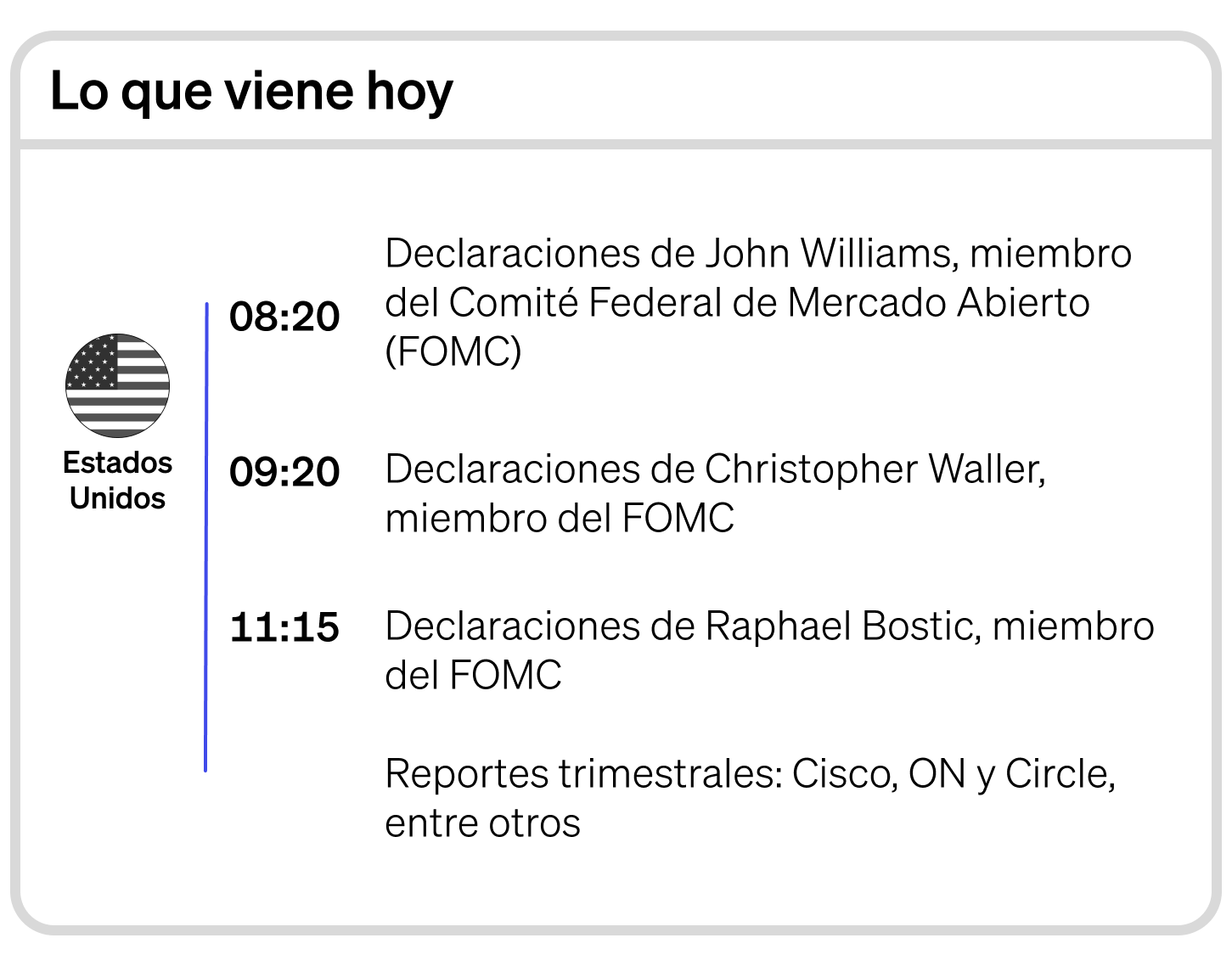 Economistas anticipan que los datos pendientes confirmarán una desaceleración económica, con un mercado laboral más débil y una inflación aún elevada. Si bien el presidente de la Fed, Jerome Powell, señaló que los indicadores alternativos muestran estabilidad macroeconómica, el apagón estadístico ha generado divisiones dentro del banco central sobre el momento adecuado para un nuevo recorte de tasas, mientras los inversionistas ya descuentan una reducción en diciembre.