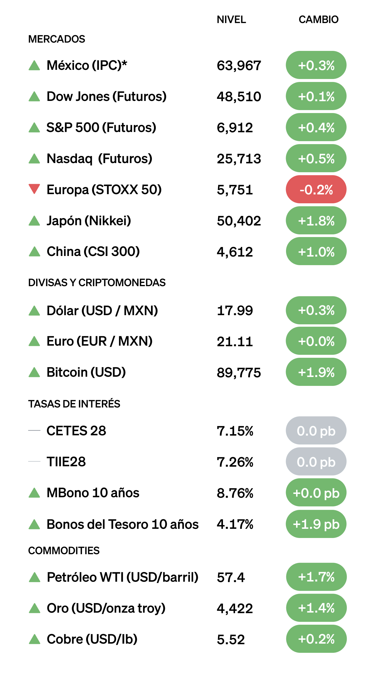 Lo más importante: Avanzan conversaciones sobre Ucrania; Fed señala pausa; Banco Popular de China mantiene la tasa; EE. UU refuerza agenda migratoria 2026; autorizan acuerdo entre Nvidia e Intel y Unión Pacific y Norfolk Southern preparan fusión histórica. En México, atención a semana clave en datos económicos; Costa Coffee llega a México; revisión del T-MEC inicia en enero. |