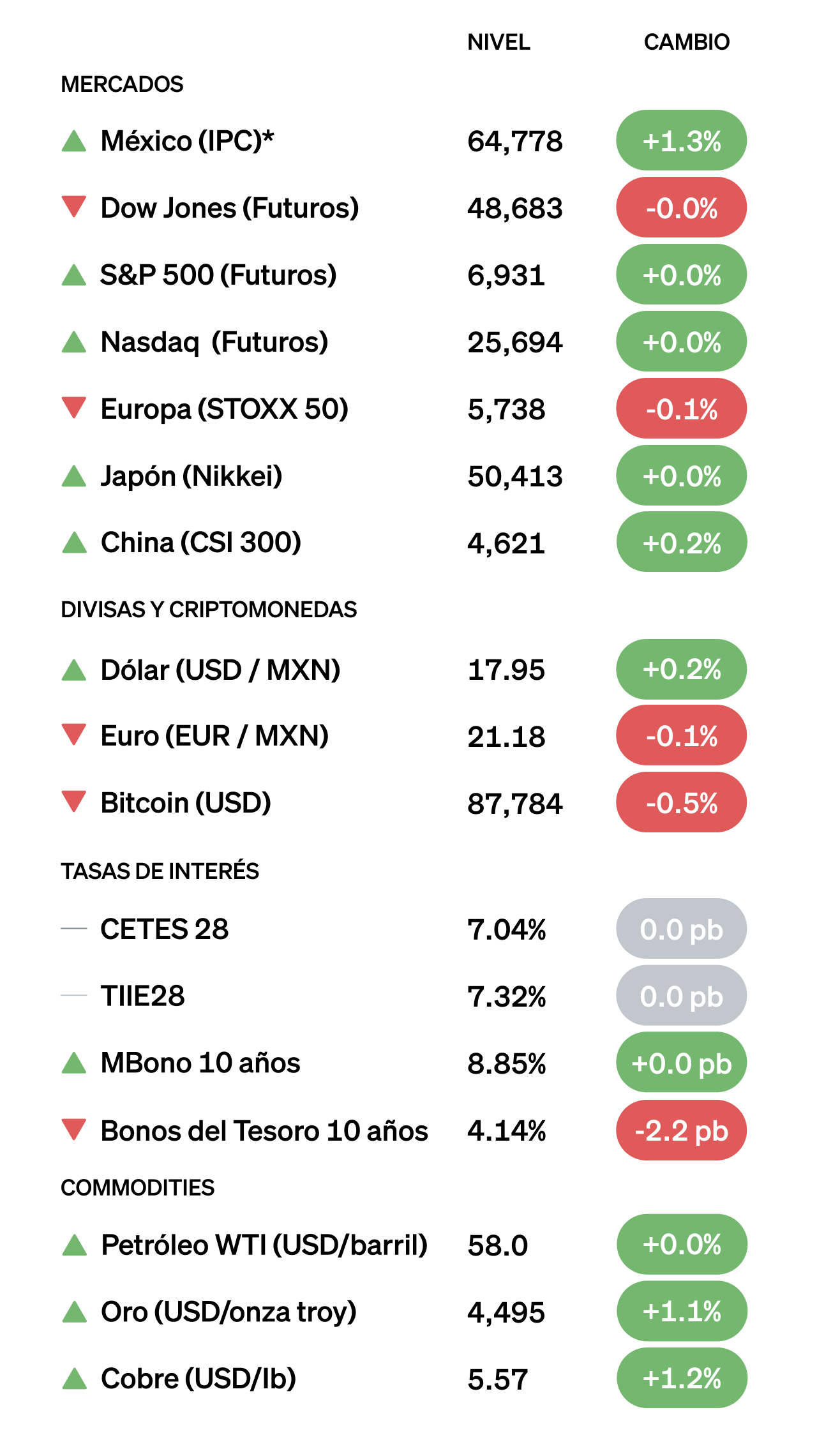 Por su parte, el presidente de la Fed de Nueva York, John Williams, señaló que, debido al cierre gubernamental y a la falta de recopilación de datos, es posible que la última lectura del índice de precios al consumidor haya estado distorsionada, por lo que “es difícil saber” qué tan precisas son las cifras. En este sentido, indicó que esperan que el dato de inflación de diciembre ofrezca más claridad sobre la situación en el país. |