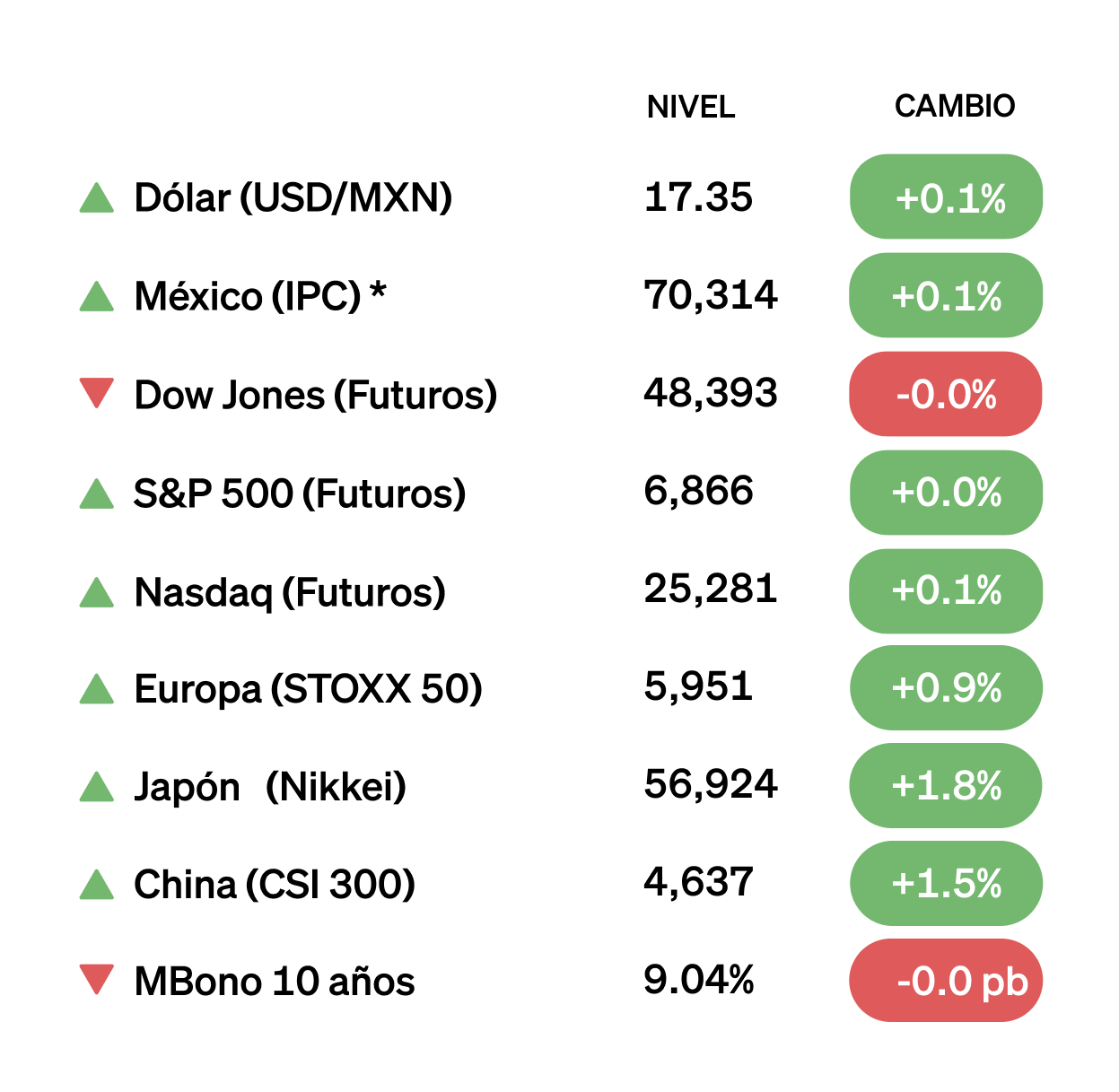 Actualizado a las 5:35 am. Datos a la operación más reciente *Datos al cierre del día anterior. |