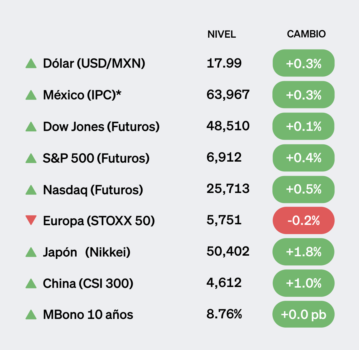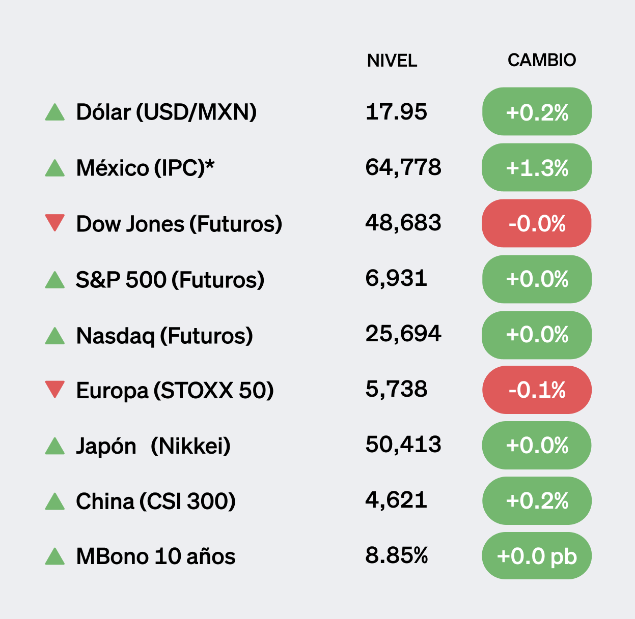 Actualizado a las 5:35 am. *Datos al cierre del día anterior. |