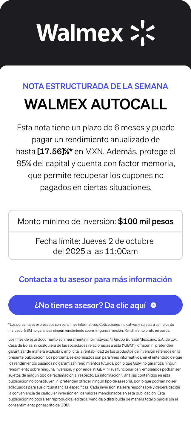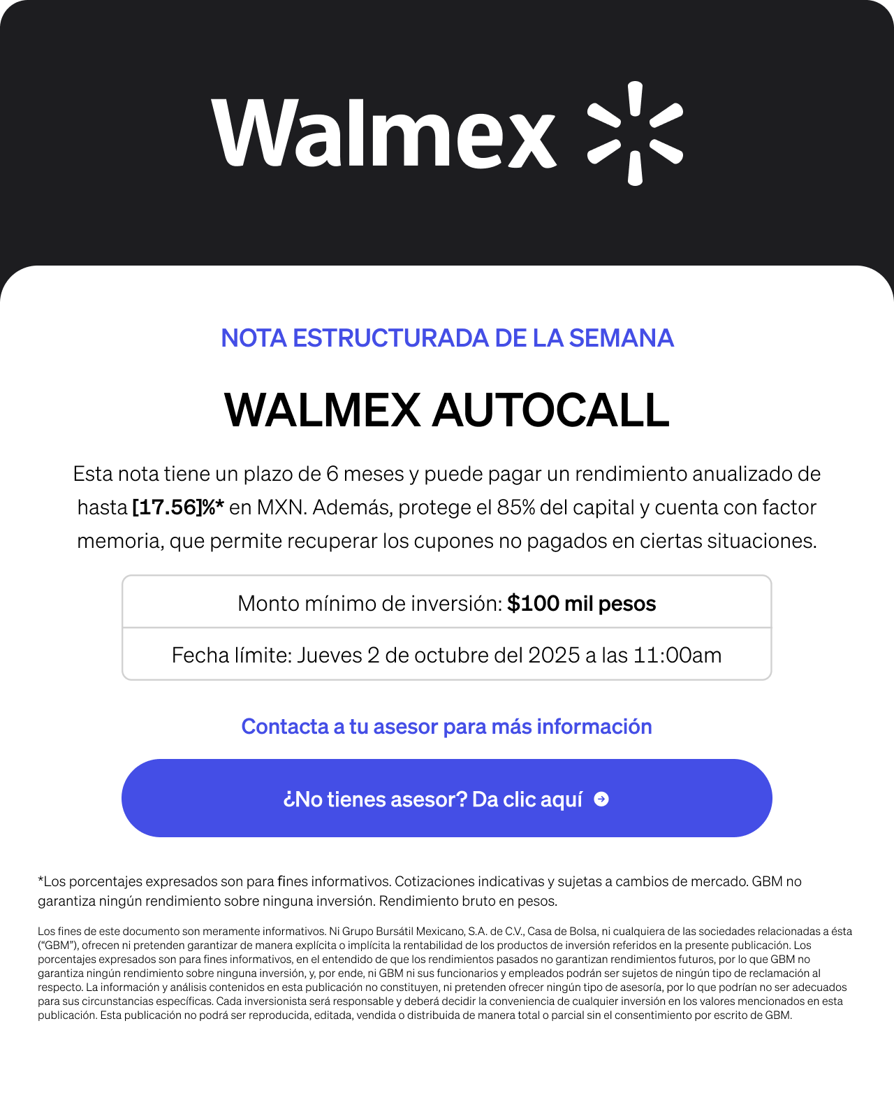 Copyright © . Grupo Bursátil Mexicano S.A. de C.V., Casa de Bolsa, México. Todos los derechos reservados. Aviso Legal |