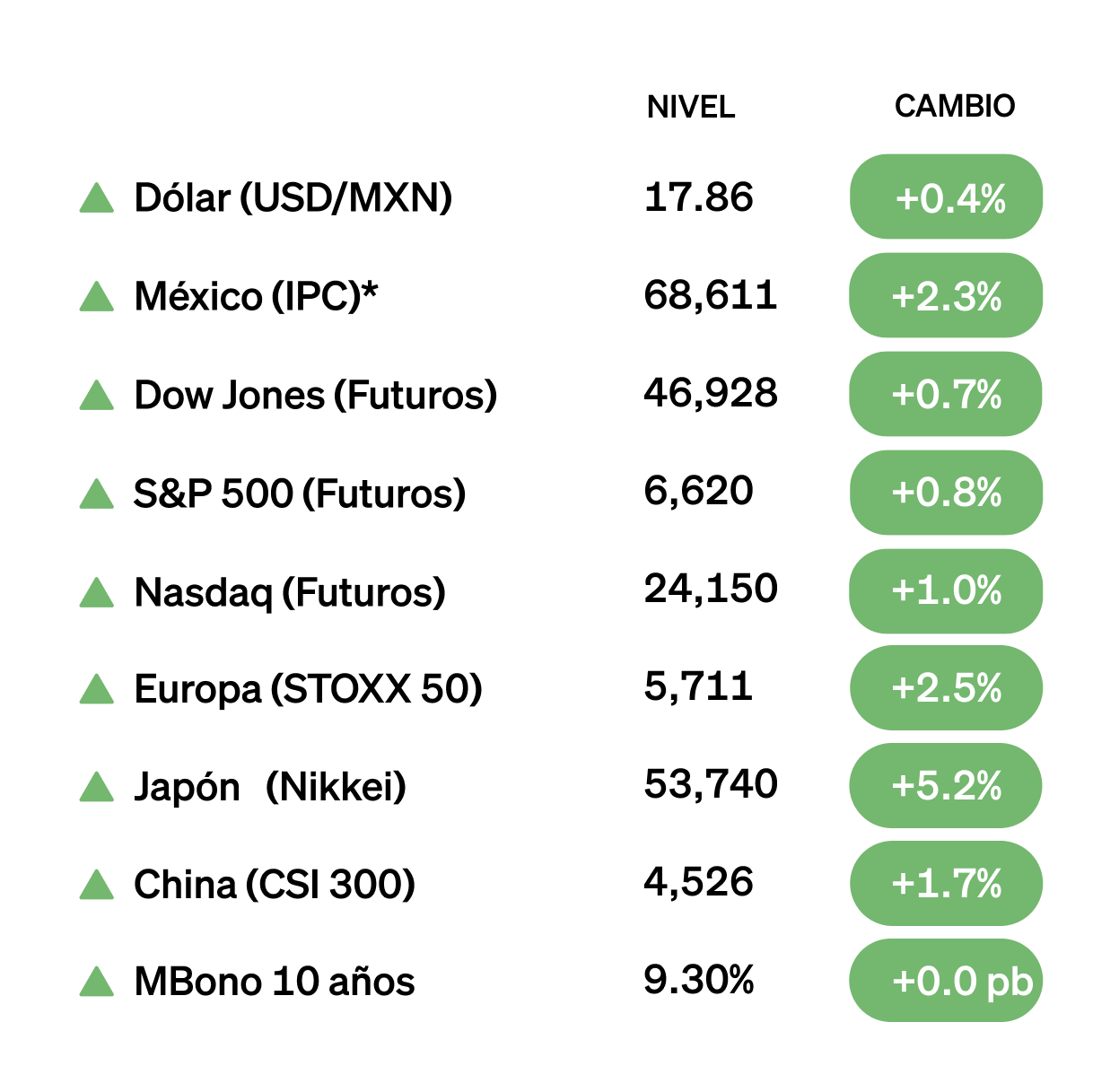 | Actualizado a las 5:35 am. Datos a la operación más reciente *Datos al cierre del día anterior. |