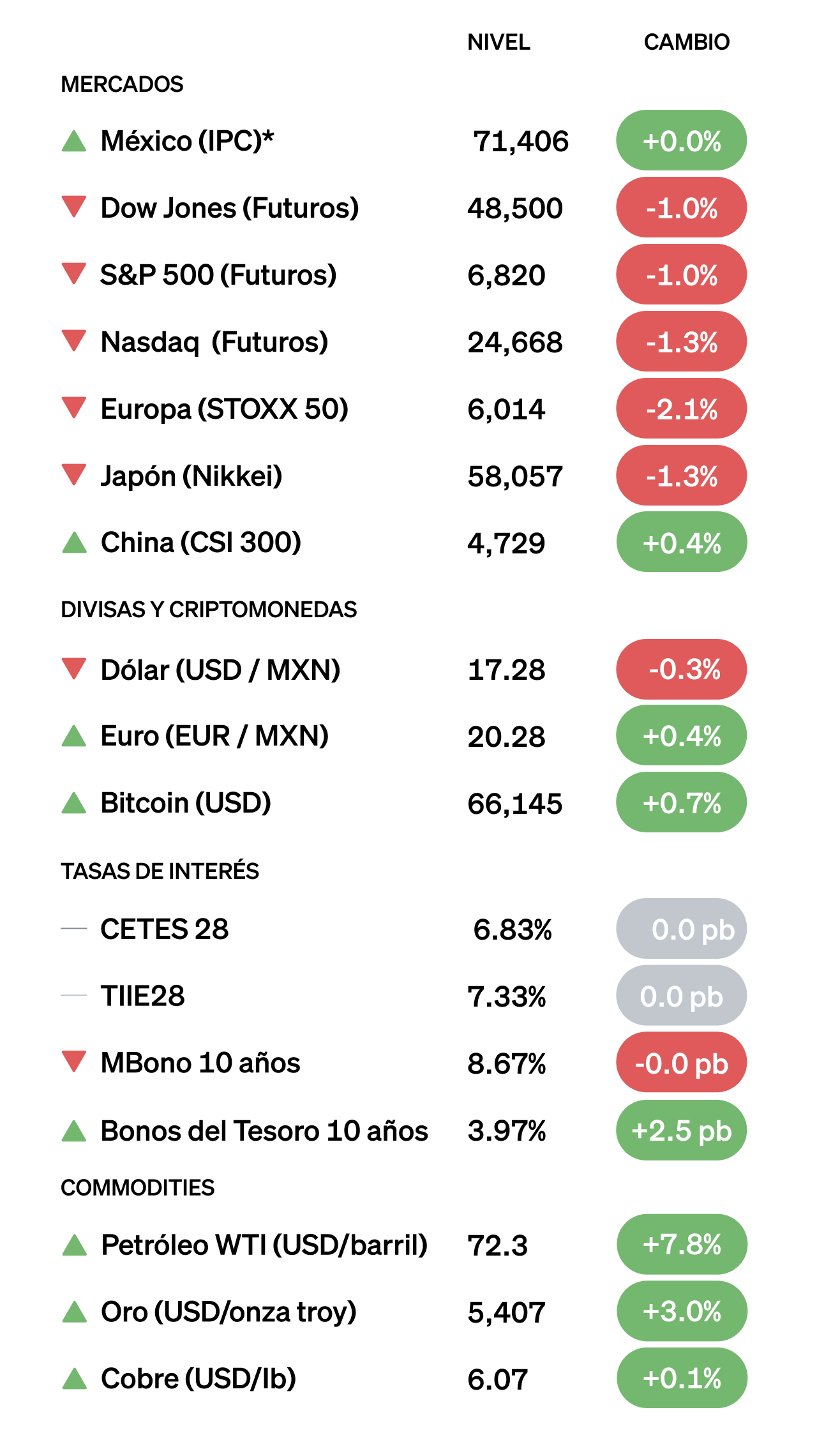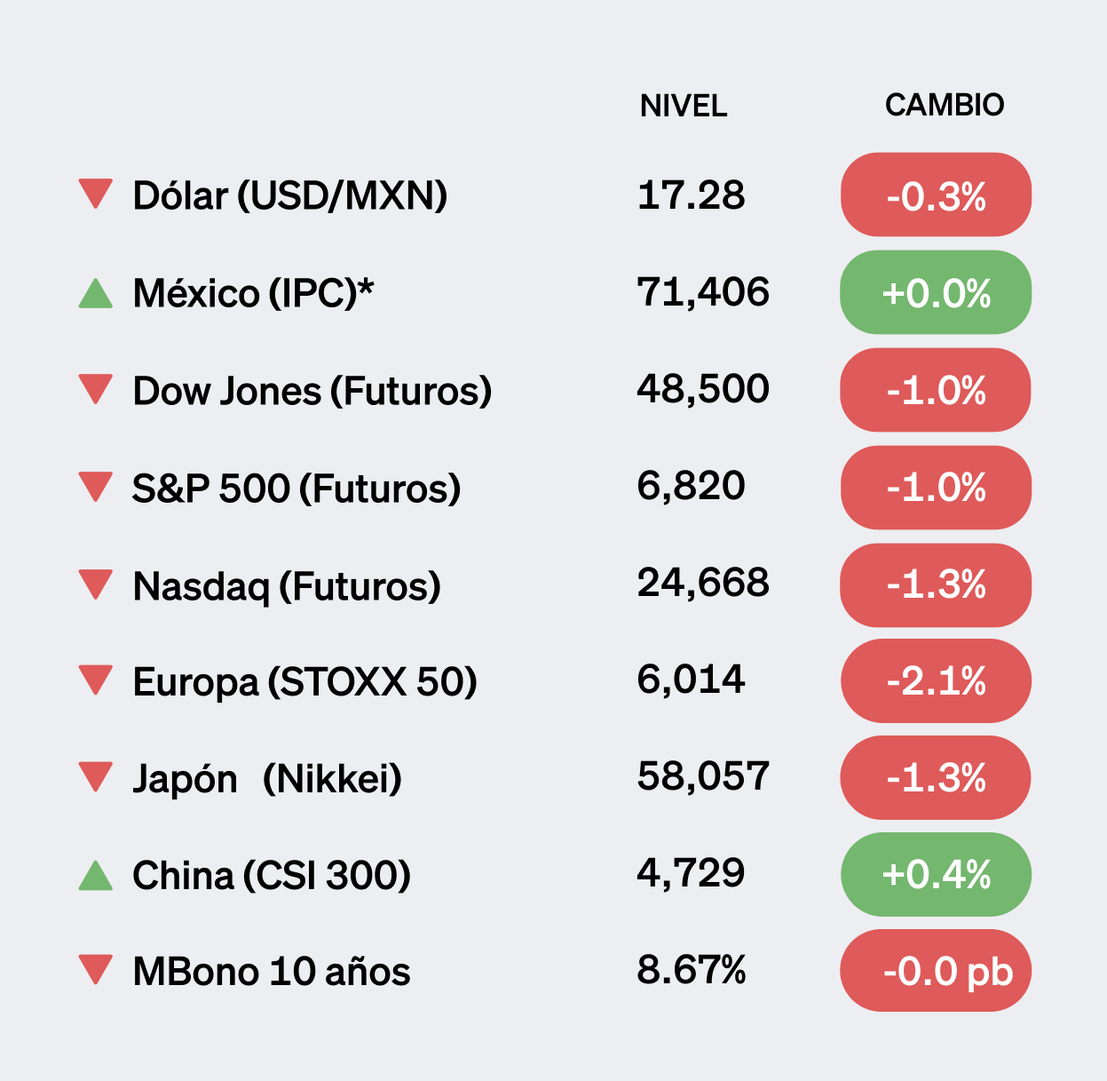 Actualizado a las 5:35 am. *Datos al cierre del día anterior. |